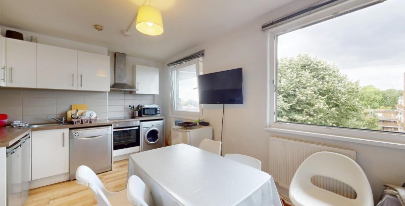 This professionally managed 4-bed split-level flat-share offers a bright open-plan kitchen/lounge/diner with access to a private balcony directly off the living area, providing useful outdoor space and plenty of natural light. The property benefits from a main bathroom plus an additional separate toilet, ideal for shared living. The kitchen is fully equipped with;