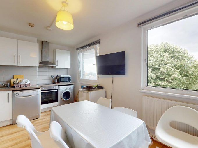 This well-maintained five-bedroom flat-share is arranged for comfortable shared living, with generous communal space and excellent facilities throughout. The open-plan kitchen, dining and lounge area is bright and well equipped, providing a practical space to cook, eat and relax. With two WCs, a separate shower room and a main bathroom, the layout is ideal for shared living. The property is professionally managed and suited to respectful tenants looking for a calm, functional co-living home for longer-term stays.