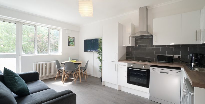 Spacious, professionally managed 4-bed co-living flat-share featuring a well-presented open-plan kitchen/diner/lounge with modern units, good natural light and direct access to a private balcony, creating a practical and sociable shared living space. The property includes a main bathroom plus an additional separate toilet for added convenience and suits a respectful, tidy person seeking a calm home for 6–12 months. A courtesy cleaning service is provided for the communal areas fortnightly.