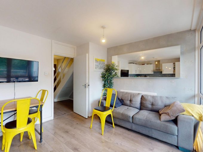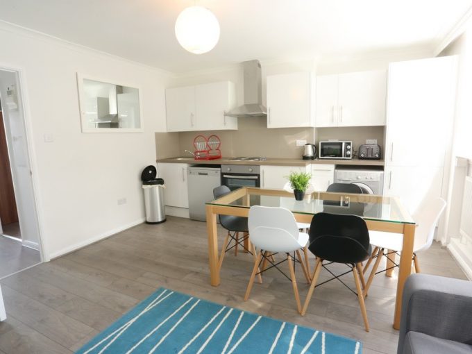 The flat has been completely renovated to a high, modern standard throughout. The lounge-diner offers a choice between grabbing a quick snack at the kitchen or sitting down at the dining table to enjoy a meal with company, or a movie on the wall-mounted HDTV. The sleek kitchen is fully loaded with modern appliances, microwave, oven and hob, fridge, freezer, washer-dryer, and dishwasher. The crisp clean bathroom is equally well-equipped with a power shower and a separate toilet just to speed up the process of getting up in the mornings.